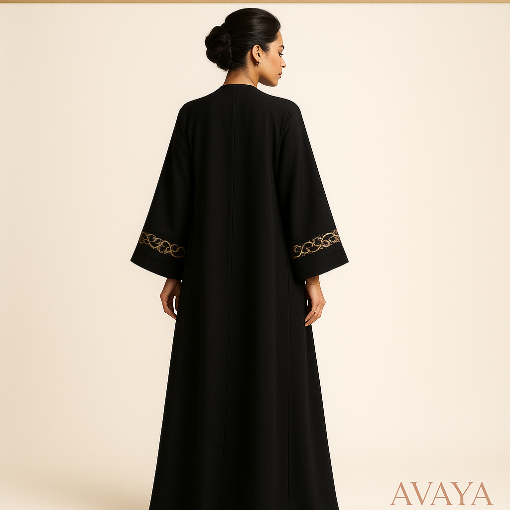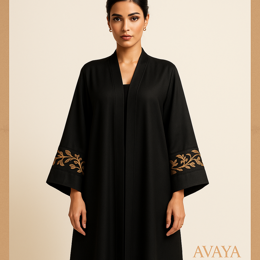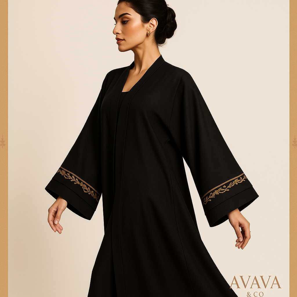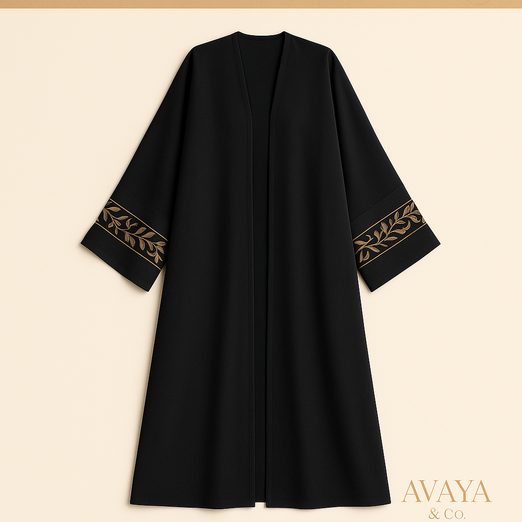 عباية متدفقة مع شق عالي وحواف من الدانتيل.