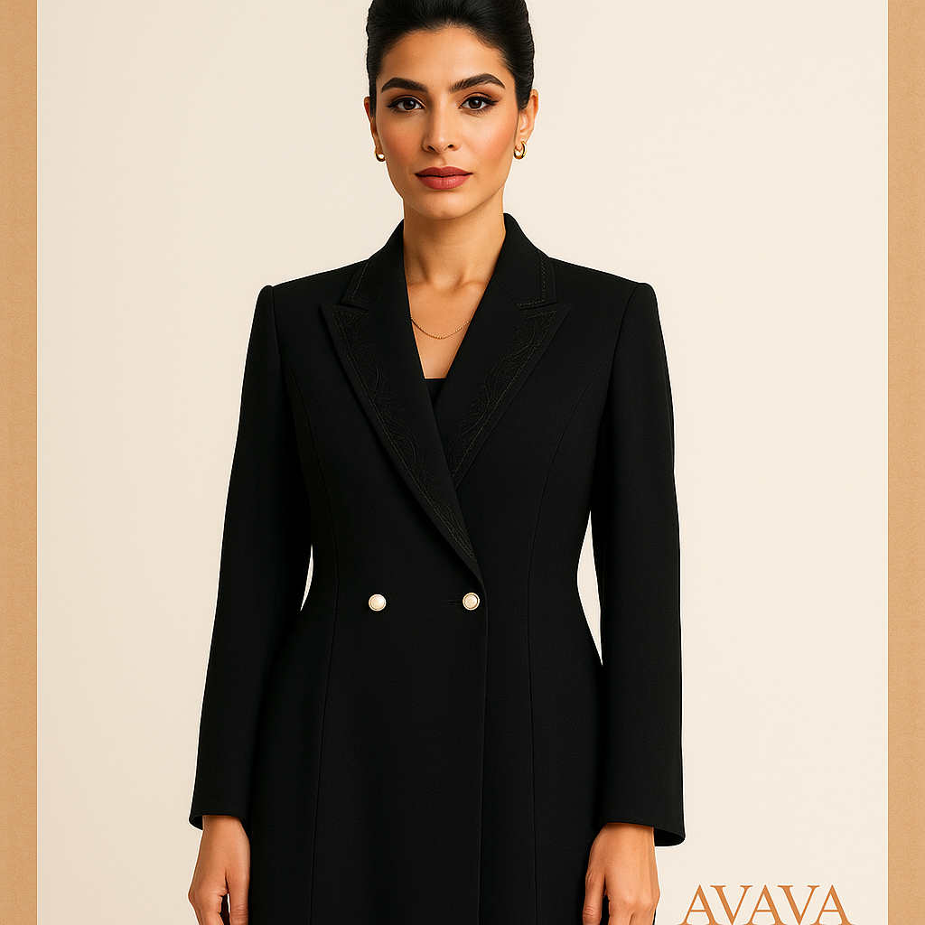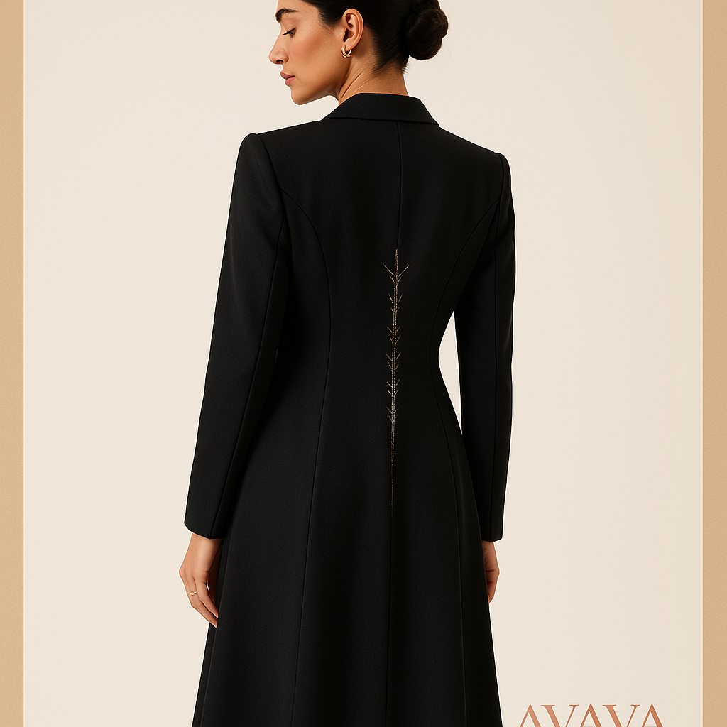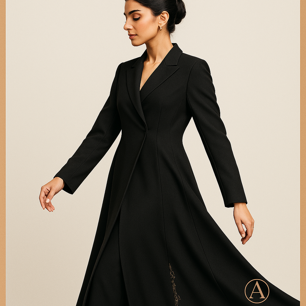 عباية بليزر بزر واحد وأكمام مطوية صغيرة وتفاصيل درز مخفية.