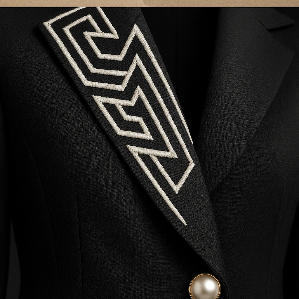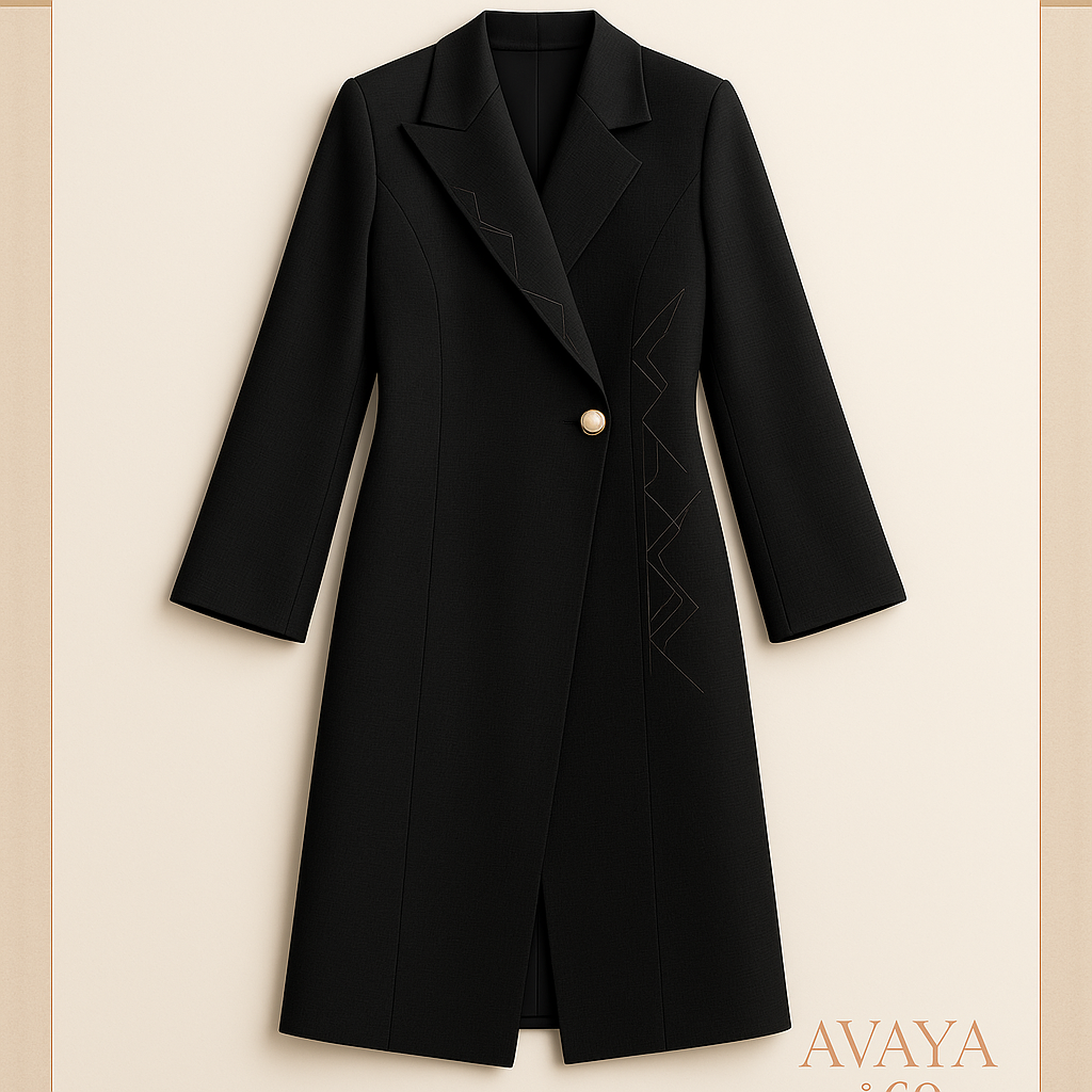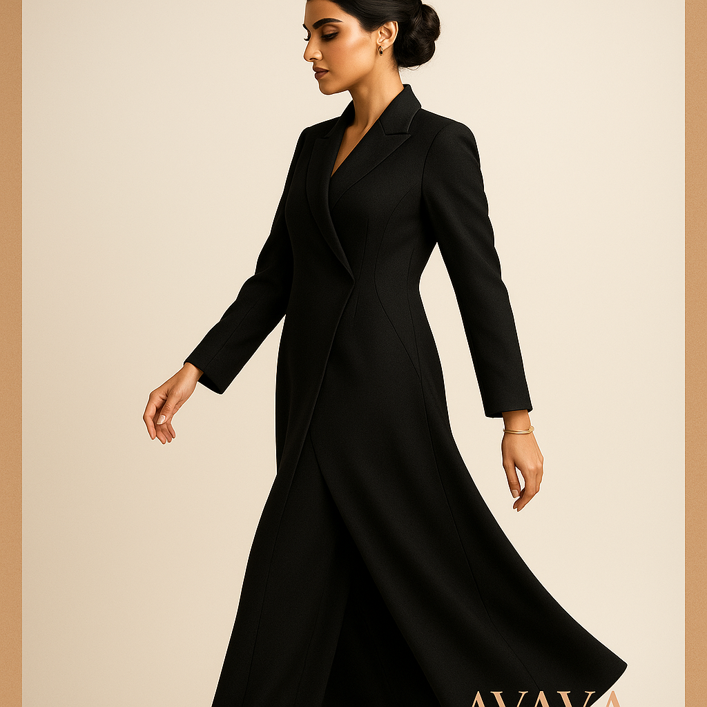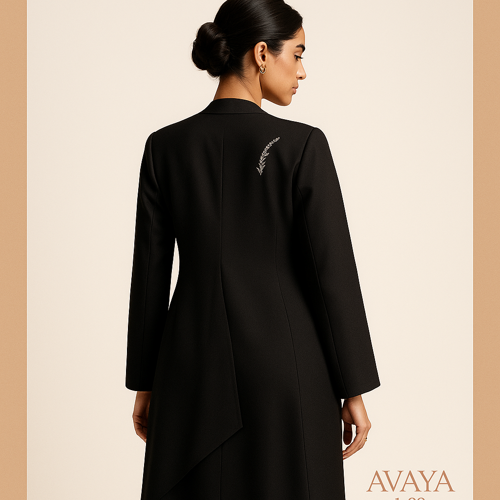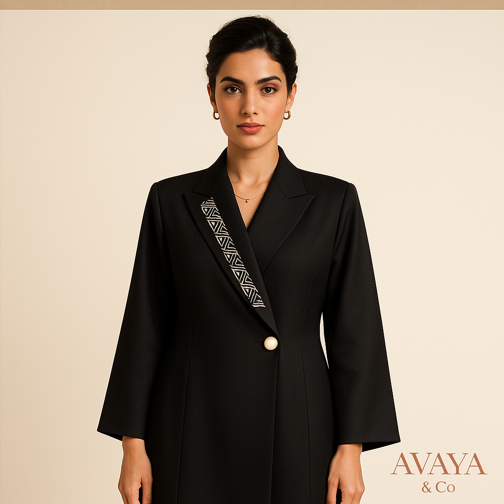 عباية بليزر مخملية فاخرة مع فتحة ظهر على شكل حرف V وحواف من الساتان غير اللامع.